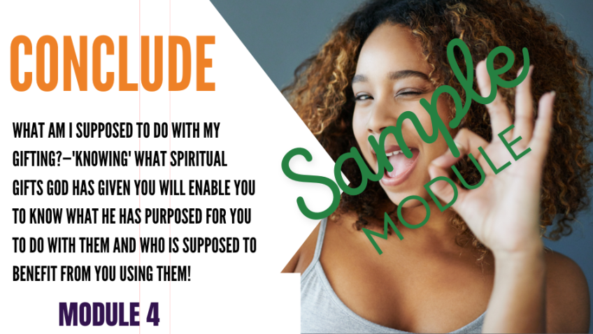 Your opportunity to sample 'CONCLUDE: What Are You Supposed to Do With Your Gifting?' and get a sense of what's in store for your on the inside!